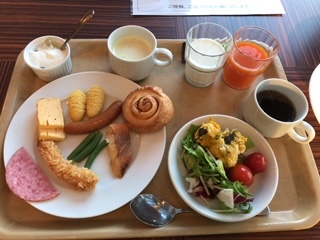 朝食は半バイキング。