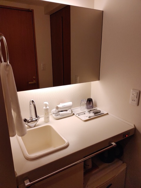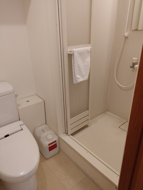 温泉があるので部屋のお風呂はシャワーのみで湯船なし。