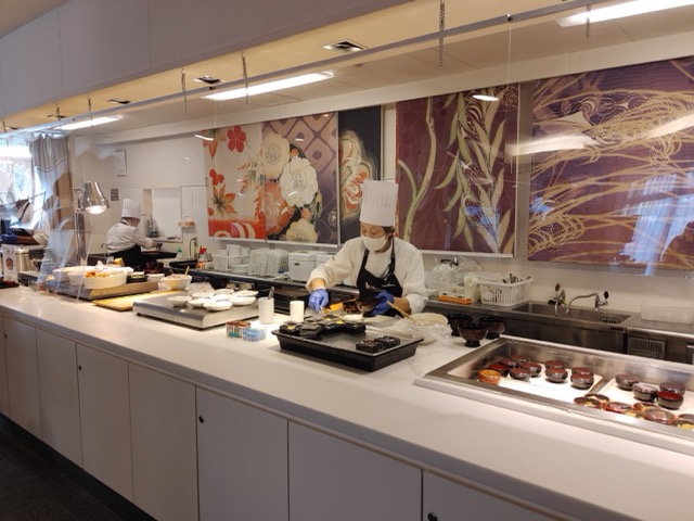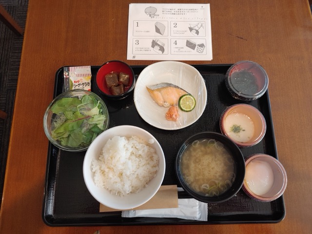 朝食はブュッフェ、小鉢がたくさんある。金沢名物のハントンライスは注文制で出来立てを食べられる。