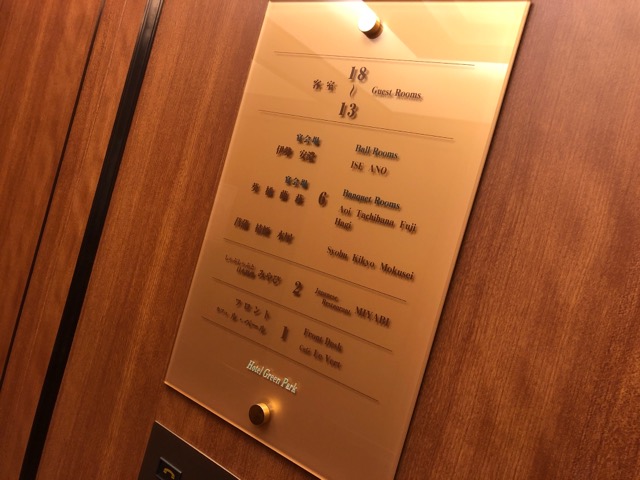 エレベーター、宴会場のある6階の次は13階まで止まらない。