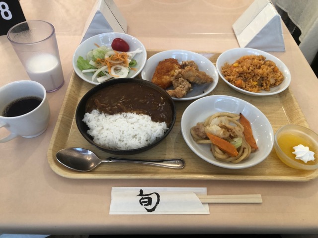 朝食はバイキング。会場のBGMがすごく平成前期。