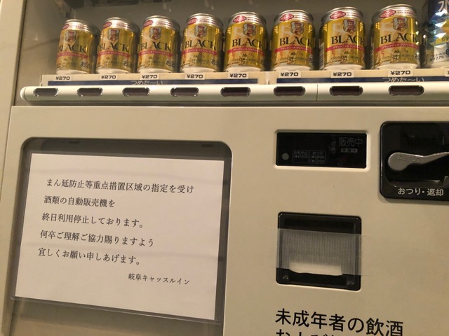 ちなみにまん防の影響で自販機のビールが販売中止になってた。
