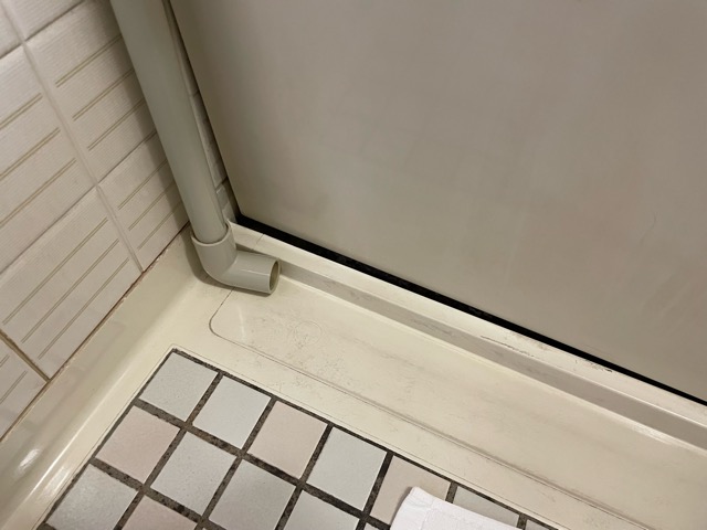 エアコンから浴室へパイプが伸びている。排水しているらしい。