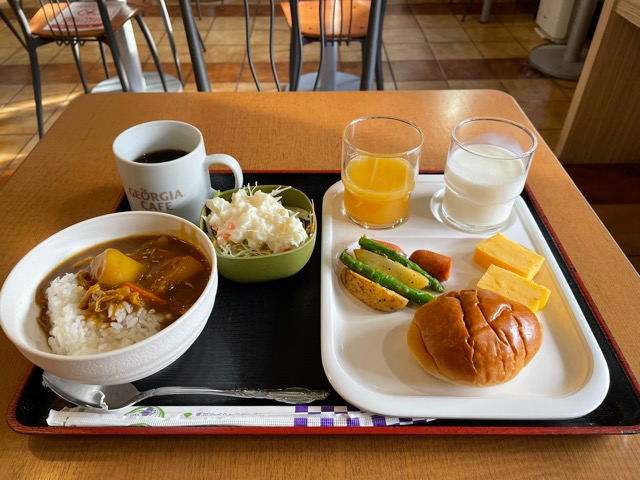 朝食は軽いバイキング。カレーがある。ジャガイモが少し生煮え。