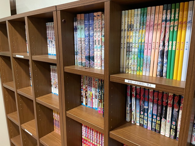 朝食会場に漫画あり。その部屋の奥に大浴場あり。