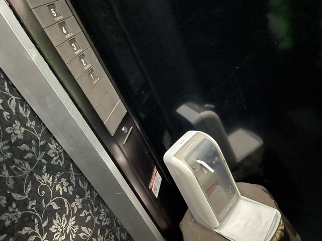 エレベーター中に自動のアルコール消毒やつがある。