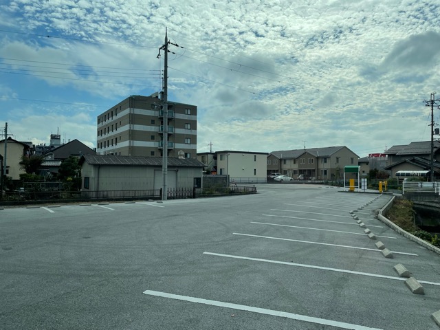 裏に広い駐車場がある。トラックは表から入れないので裏から。