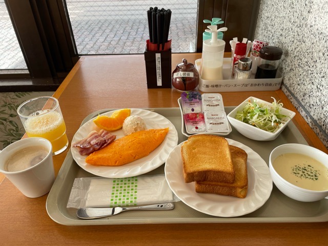 洋食をいただいた。パンとかはおかわり自由。