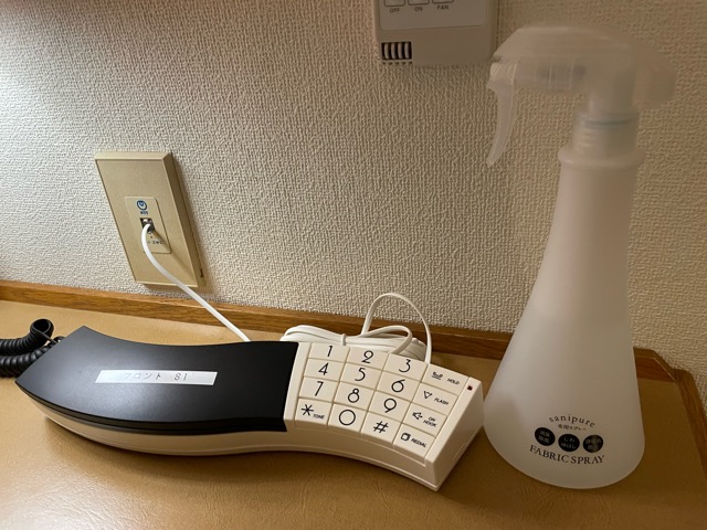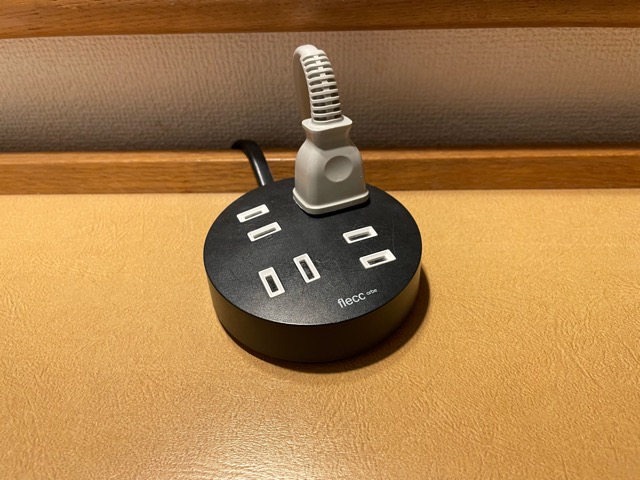 卓上タップが丸くて可愛い。電話機もうねってて可愛い。