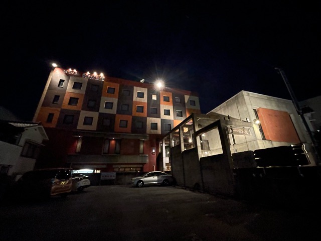 駐車場はホテル1階部分にある。ハイエースとかは入るけどトラックは入らない。