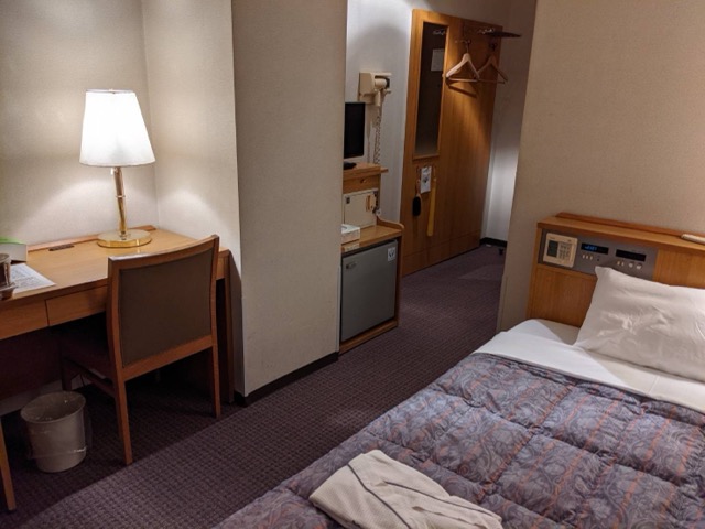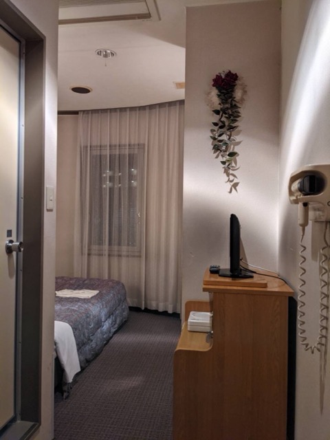 11月にリューアルオープンして綺麗ではあるが、昔ながらの趣もある。ホテルの形が丸いかんじなので、部屋によって形は違い、机とテレビ・冷蔵庫・金庫の間には柱があり、机に座った状態ではテレビが見られない。