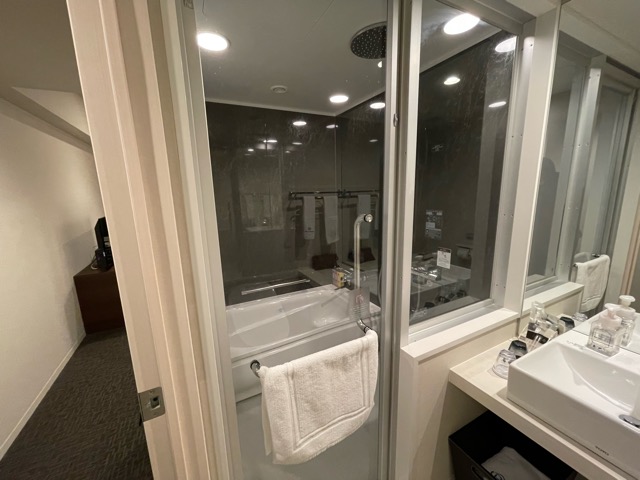 部屋開けてからベッドまで遠いなと思ったけど。風呂が立派だった。