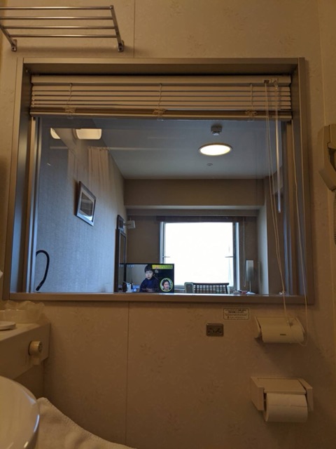 ブラインドを開ければ、お風呂に入りながら、テレビを見られる。音声は聞こえないけれど。