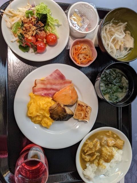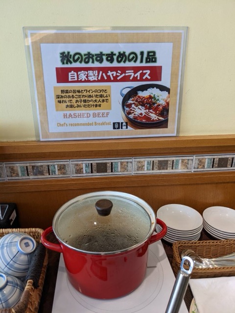 朝食はビュッフェ。新潟の郷土料理、栃尾のあぶらあげ、のっぺい、タレかつなどがあったり、フォーやオリエンタルチキンカレー、ハヤシライスがあった。パンは、クロワッサンがサクサクフワフワジュワッとしてとても美味しい。季節のグラタンは鮭ときのこが入っていて美味しい。デザートも色々なケーキがあったり充実していた。ちゃんとメニューは日替わりなので、連泊でもいい。
