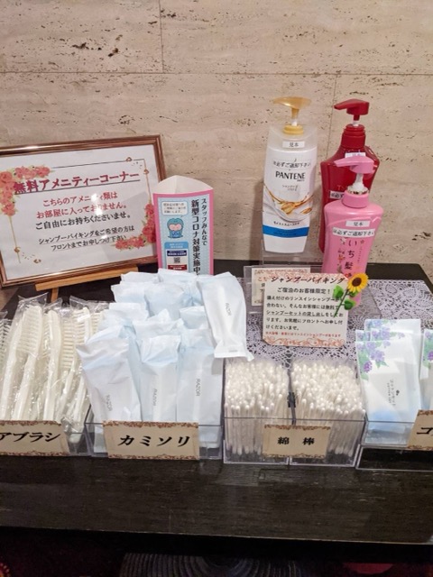 フロントではシャンプーを選ぶことが出来る。TSUBAKI、パンテーン、いち髪がある。