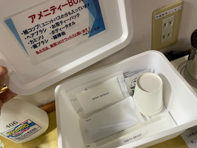 部屋のアメニティは全て、アイスの箱みたいなやつにしまってある。