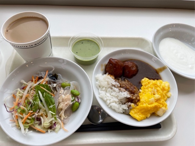 朝食無料。宇治抹茶プリン美味しかった。