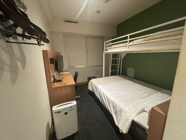 部屋には2段ベッド。やはり枕が硬くてでかい。