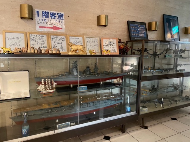 昔ながらの温泉宿泊施設、というかんじ。いろんなもの飾ってある。
