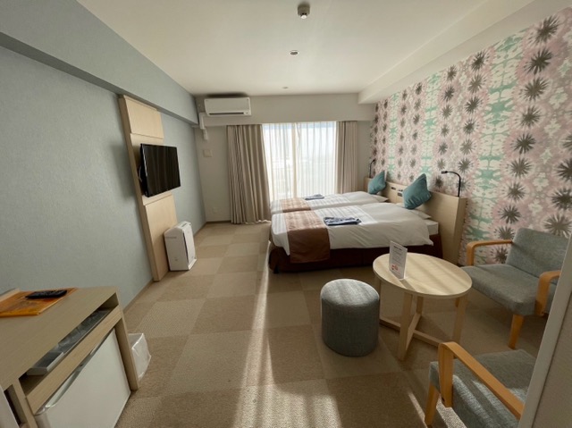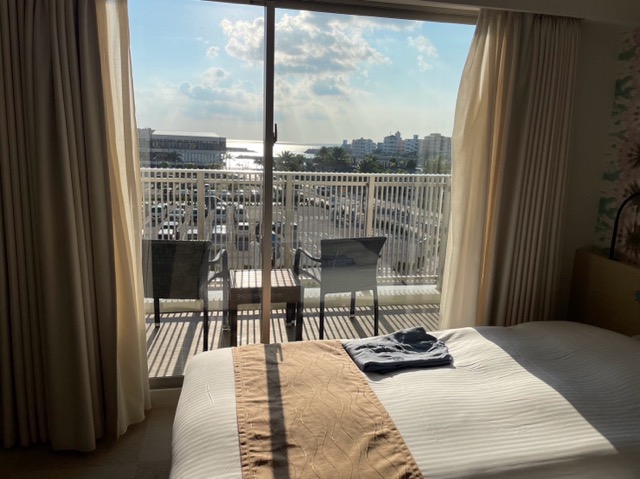 部屋めちゃくちゃ広くてベランダから海に沈む夕日も見られる。