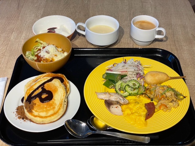 朝食、パンケーキと自分で作るタコライス楽しかった。