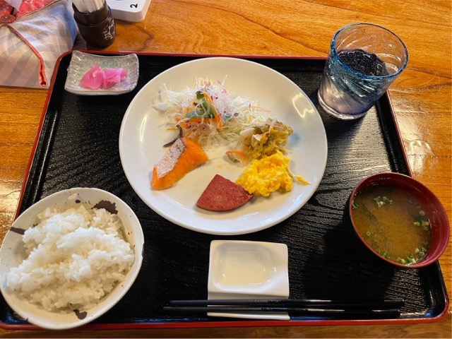 朝食は隣接したお食事処へ。私にはじゅうぶんだったけど食べ盛りには物足りないかも?