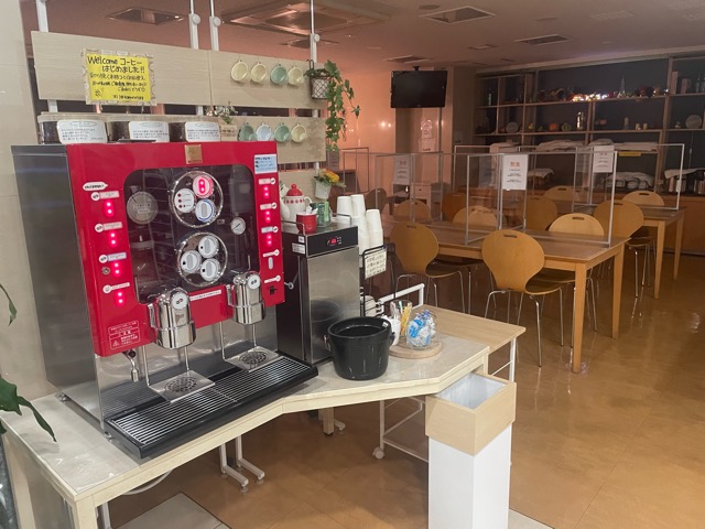 ロビーにコーヒーマシンあり。たぶんいつでも飲める。
