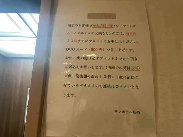 翌日の部屋の清掃を断ると500円分のQUOカード貰える。