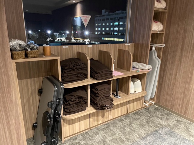 室内に洗濯機がついている部屋もあるらしい。コインランドリーもある。部屋にピンチハンガーも置いてあるし、洗濯物かけられるところもあって便利。