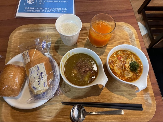 朝食は4種のスープから2種類選んで注文する珍しいスタイル。