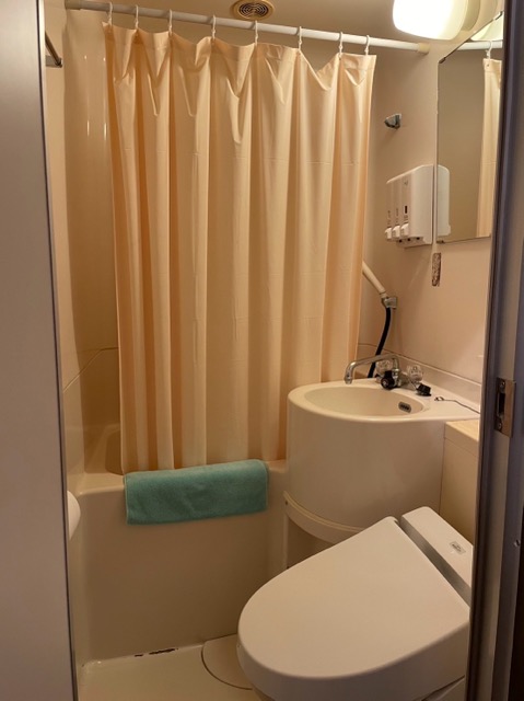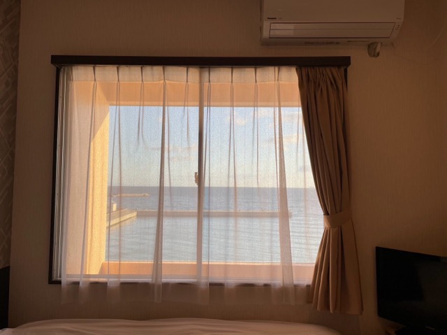 お部屋は広い。ユニットバスは狭い。怖いぐらいに海の音が聞こえてくるので、少しドキドキする。