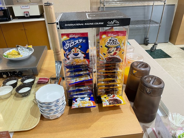 ケロッグのシリアルが袋で置かれてて珍しい。