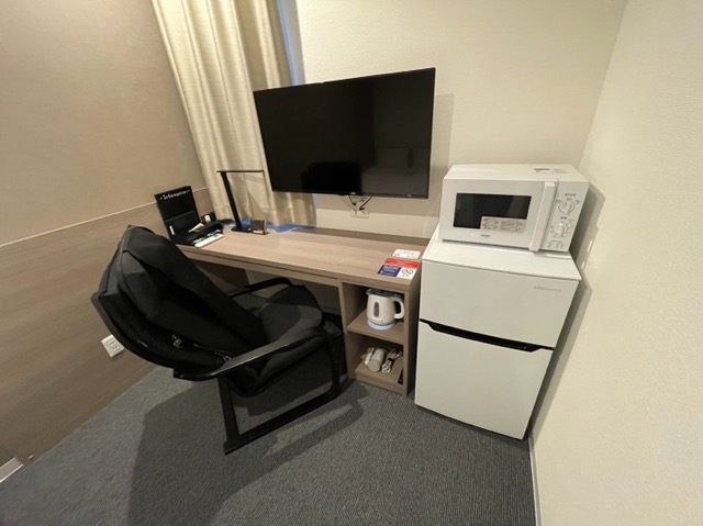部屋に冷蔵庫と冷凍庫と電子レンジとマッサージチェアある。テレビ大きいし部屋ピカピカで快適だった。連泊したい。