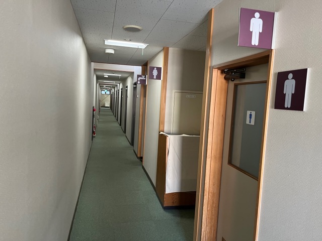 廊下の端に洗面所と男女別のトイレあり。wi-fiあり。