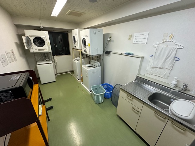 電子レンジは4階と10階にある。無料ランドリーもあり。