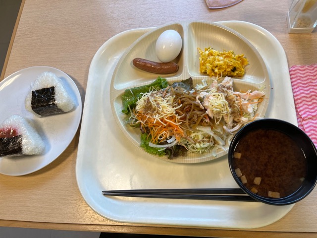 ごはんはおにぎり(梅・鮭)になっていて、レンジ加熱推奨。