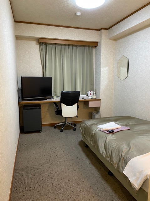 地方のビジネスホテルといった印象。全体的に暗め。