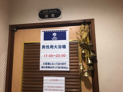 大浴場、サウナは22時半まで。男性しか入れません。一階に虎がいる。