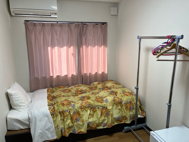 部屋は簡素。旅一段高くなった部分にマットレスで作られたベッド。