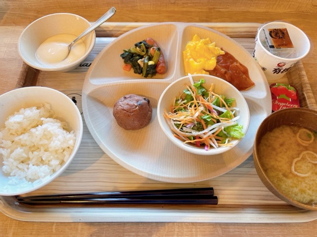 目の前にローソンがあり、ハイウェイオアシスにファミレスもたくさんあるので食べるところには困らない。