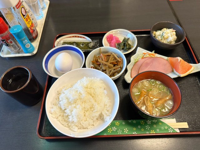 朝食は和定食。納豆はセルフなのでなんだか安心。