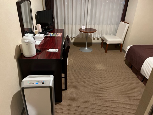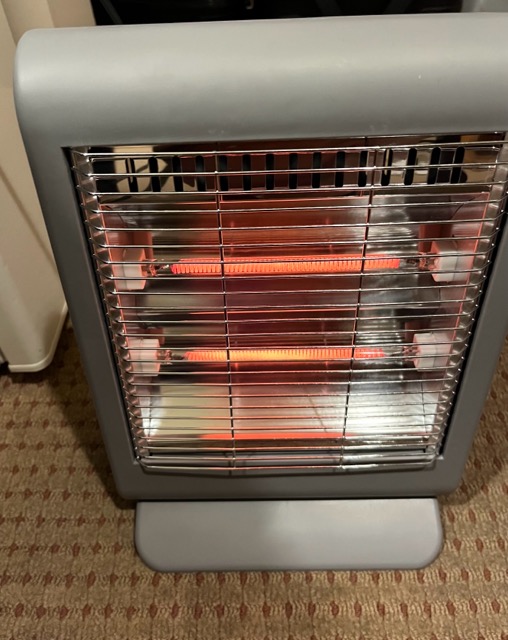 翌日は苦情が多かった為なのか、新品の小さな電気ストーブの貸し出しが行われる、そのまた翌日にやっと暖房に切り替わった。寒いのに冷房一択な理由は謎。