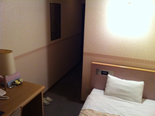 部屋は小さめ?ベッドが狭めで低め。鏡が小さめ。ドライヤーも小さめ。