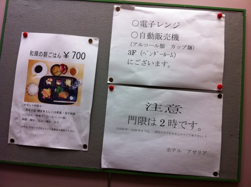 朝食は二階のレストラン(居酒屋?)で6時半から食べられる。和食700円。