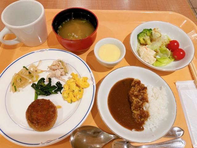 アパカレーはもちろん、おかずなども充実していた。生卵、牛乳、ヨーグルトもある。