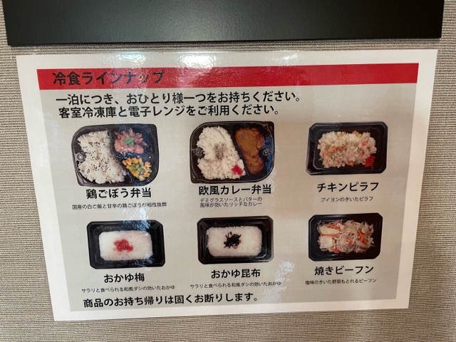 朝ごはんというか冷凍の軽食が1つもらえるスタイル。ラインナップが豊富だった。
