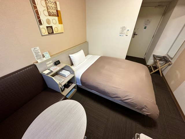 部屋に入るとなんかベッドの存在感が強い。はみ出て見えるというか。
