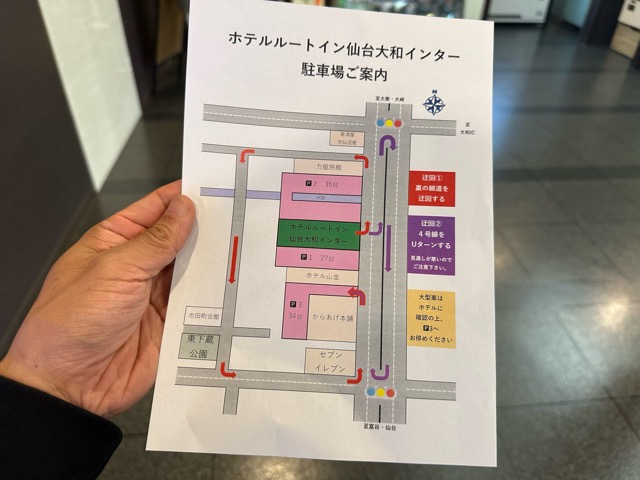 トラックの駐車場はホテルのすこし南の第3駐車場。