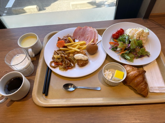 朝食は揚げ物のあるバイキング。満足。