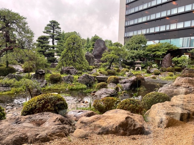 窓から広いお庭を眺めながら食べられる。